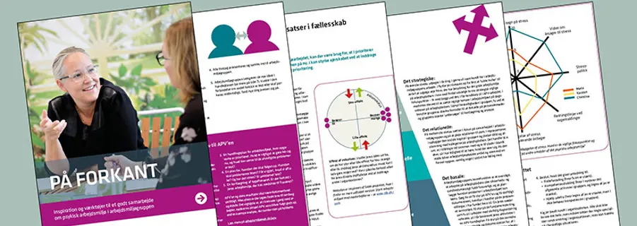 - På forkant på arbejdspladsen: Syv metoder og et tjekskema til at systematisere og styrke indsatsen for et bedre arbejdsmiljø og skabe større engagement og ejerskab på arbejdspladsen.