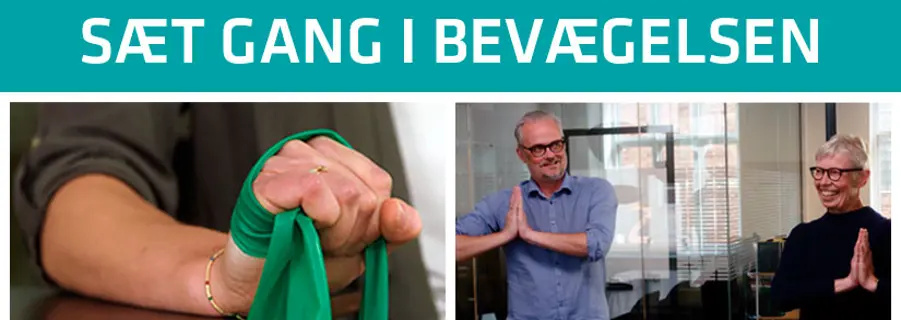 Kampagnen ”Sæt gang i bevægelsen” giver et godt bud på forskellige øvelser, som kan gennemføres på kontoret. Det gode ved øvelserne er, at de hverken kræver omklædning, høj puls eller badefaciliteter. Der er også tænkt elementer ind, som er sjove og anderledes.