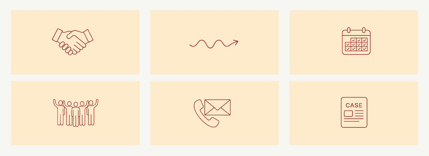 Undervejs igangsætter I konkrete tiltag, og konsulenterne hjælper med at forebygge faldgruber og sikre opfølgning. Nogle møder kan holdes virtuelt.