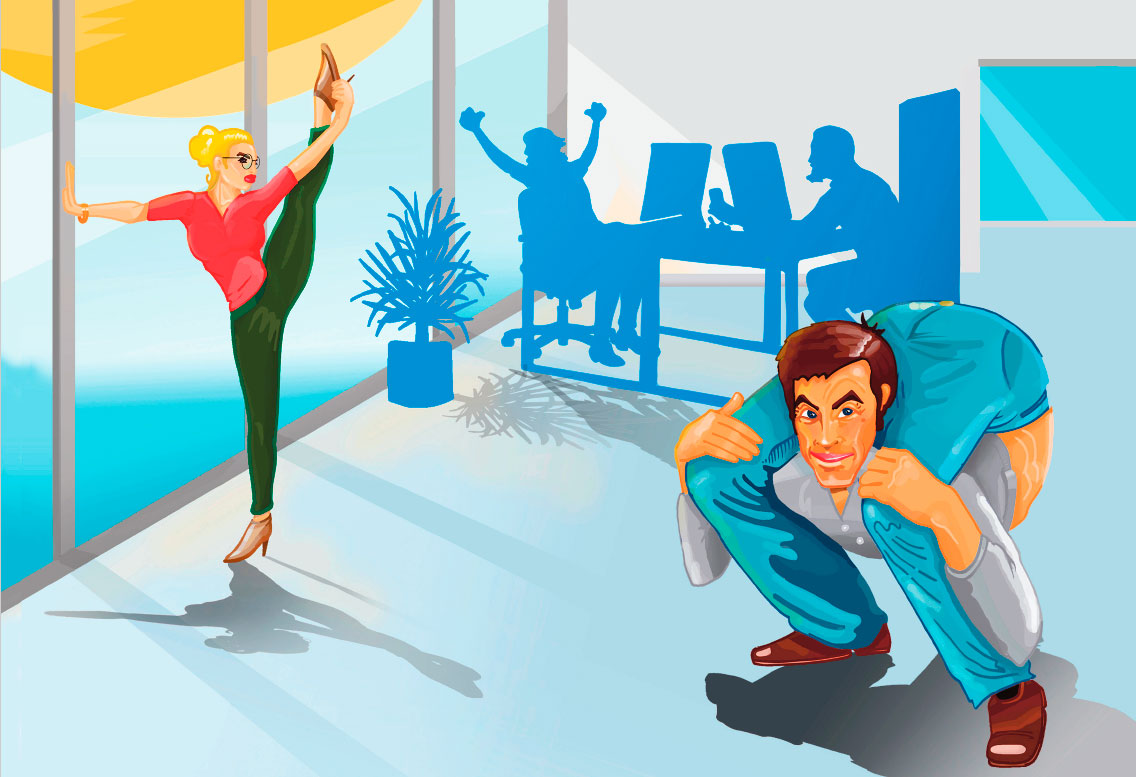 Sid i stolen og se lige frem. Hold blikket med et fast punkt og træk hovedet bagud, så du får dobbelthave. Hold stillingen i 5 sekunder og lad hovedet komme frem igen. Gentag 10 gange. Lav øvelsen hver gang du begynder at 'stivne' i nakken. Du kan sagtens lave den mens du arbejder eller taler i telefon.