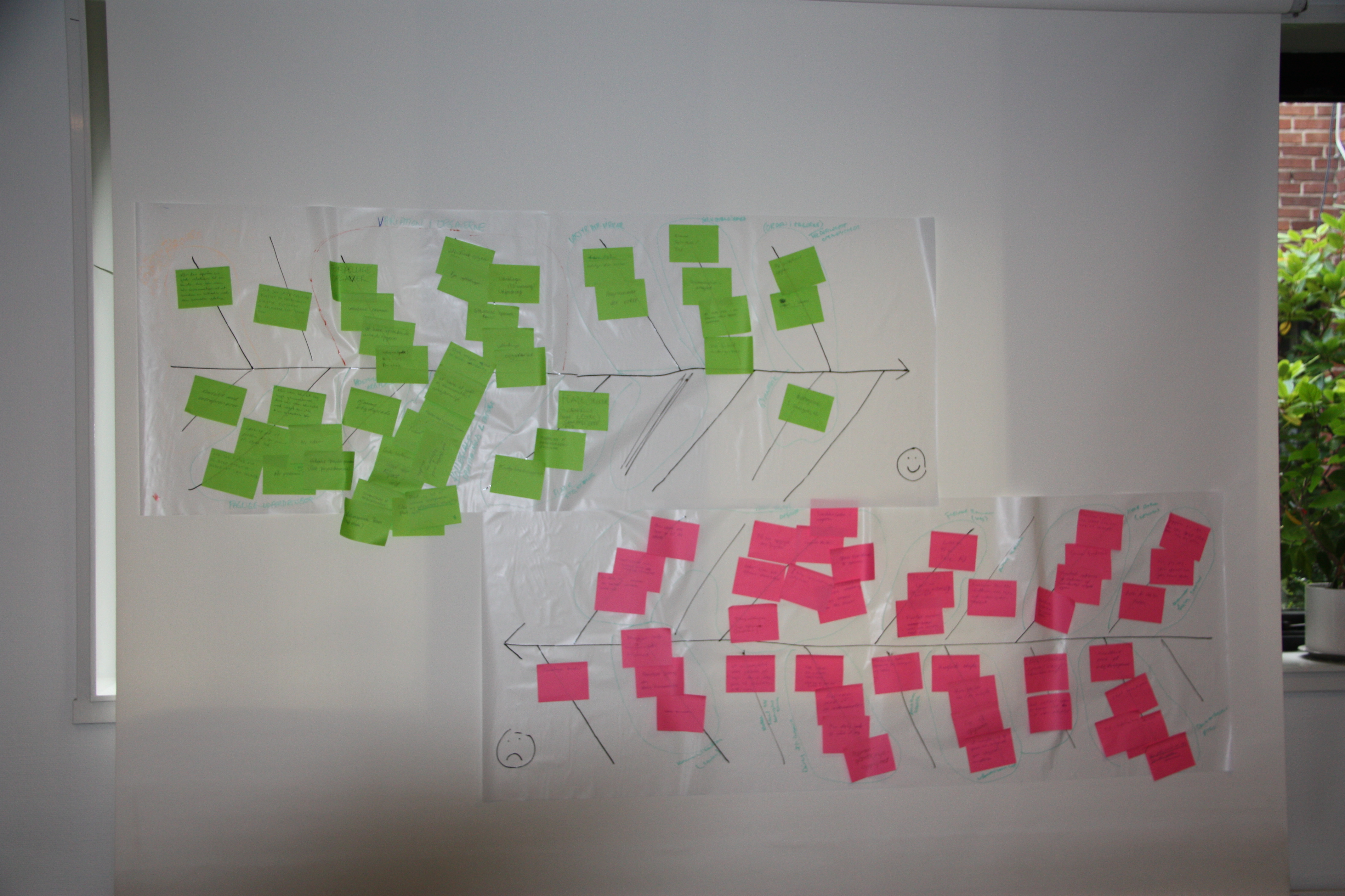 Bed deltagerne hver især bruge et par minutter på at overveje, hvad årsagerne til de fysisk anstrengende arbejdsopgaver er. Bed deltagerne placere deres post-its på fiskebenet og fortælle hvad det betyder.