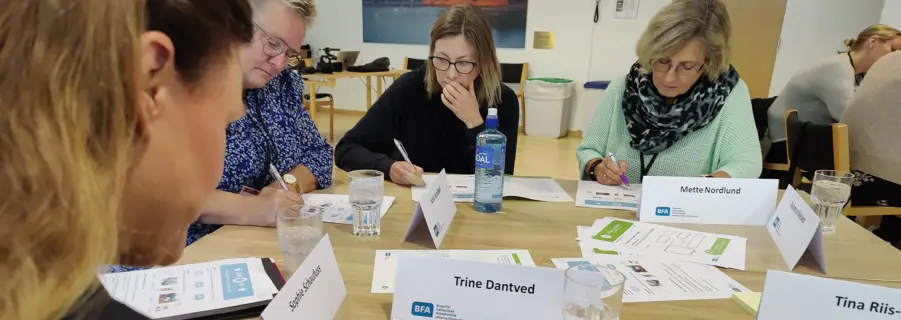 - Nu skal I selv i gang med at prøve materialet af. I skal arbejde med handlingspakke 2 ’Tal med hinanden om god forflytningskultur’, og der er en opskrift I skal følge ved bordene i dag. I skal forestille jer, at hvert bord i lokalet er en ’kunstig’ arbejdsplads. I skal vælge, hvem der skal lege leder, og I skal vælge en tidsstyrer ved hvert bord, forklarede Trine Billum.