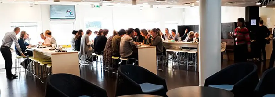 Det gør de til lyden af klirrende kopper og summende samtaler. Der er ikke stille, men der er ro nok til, at medarbejderne kan nyde maden og kollegernes selskab i deres frokostpause. Sådan har det ikke altid været.