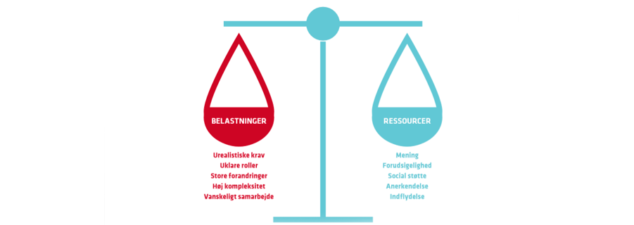 Uanset, hvor på stresstrappen I som arbejdsplads eller team befinder jer, kan det være nyttigt at være opmærksom på balancen mellem belastninger og ressourcer. Brug fx følgende lette metode til at få taget hul på dialogen – og måske finde gode løsninger i fællesskab: